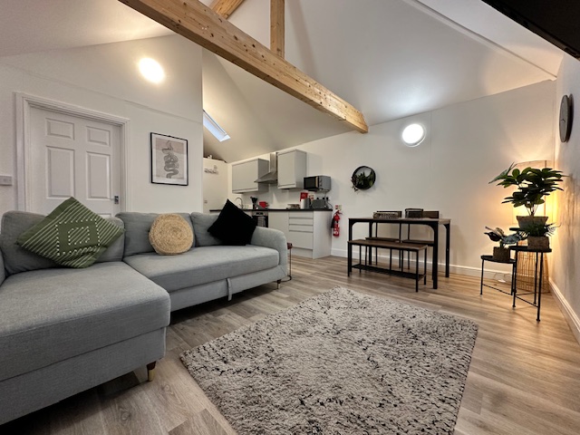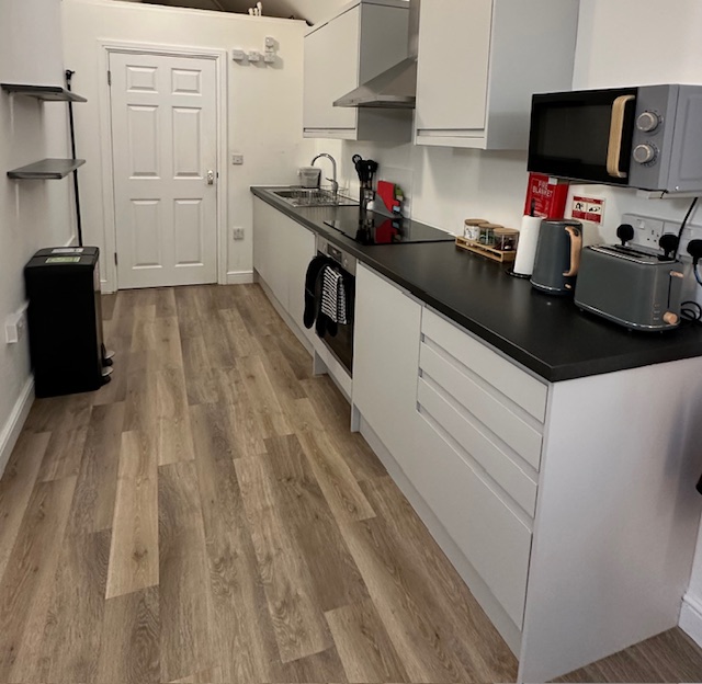 The all first floor flat has a fully equipped kitchen with comfortable living / dining area.