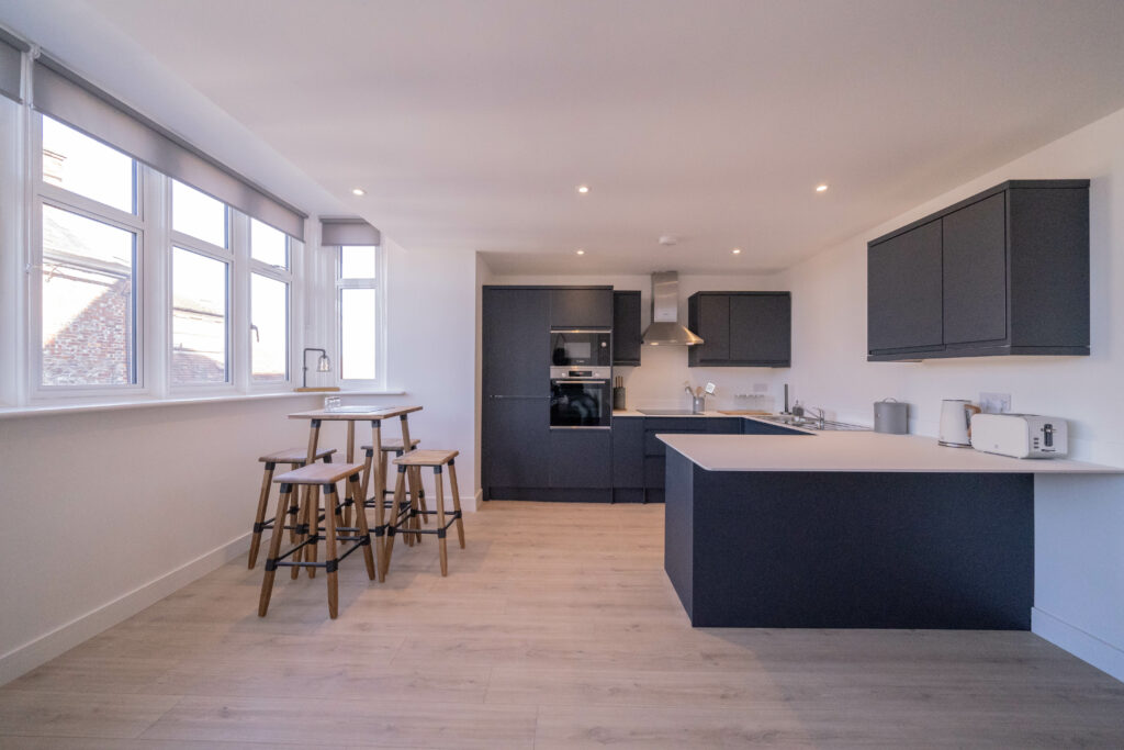 Ashbrook’s serviced apartments in Wantage are fully equipped for long-term guests. Each apartment includes a separate bedroom, open-plan kitchen and living area, private bathroom, and laundry facilities. All utilities, Wi-Fi, and weekly cleaning are included in your rate, so you can focus on work and rest without hassle.